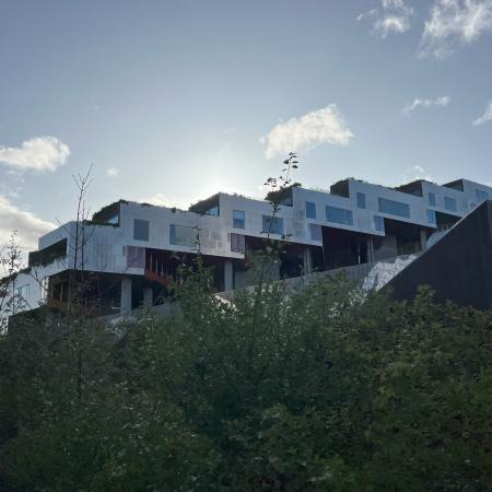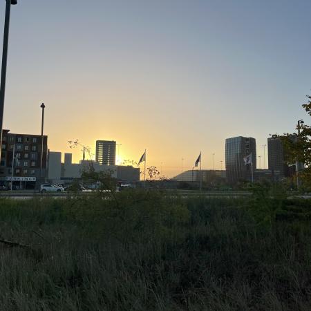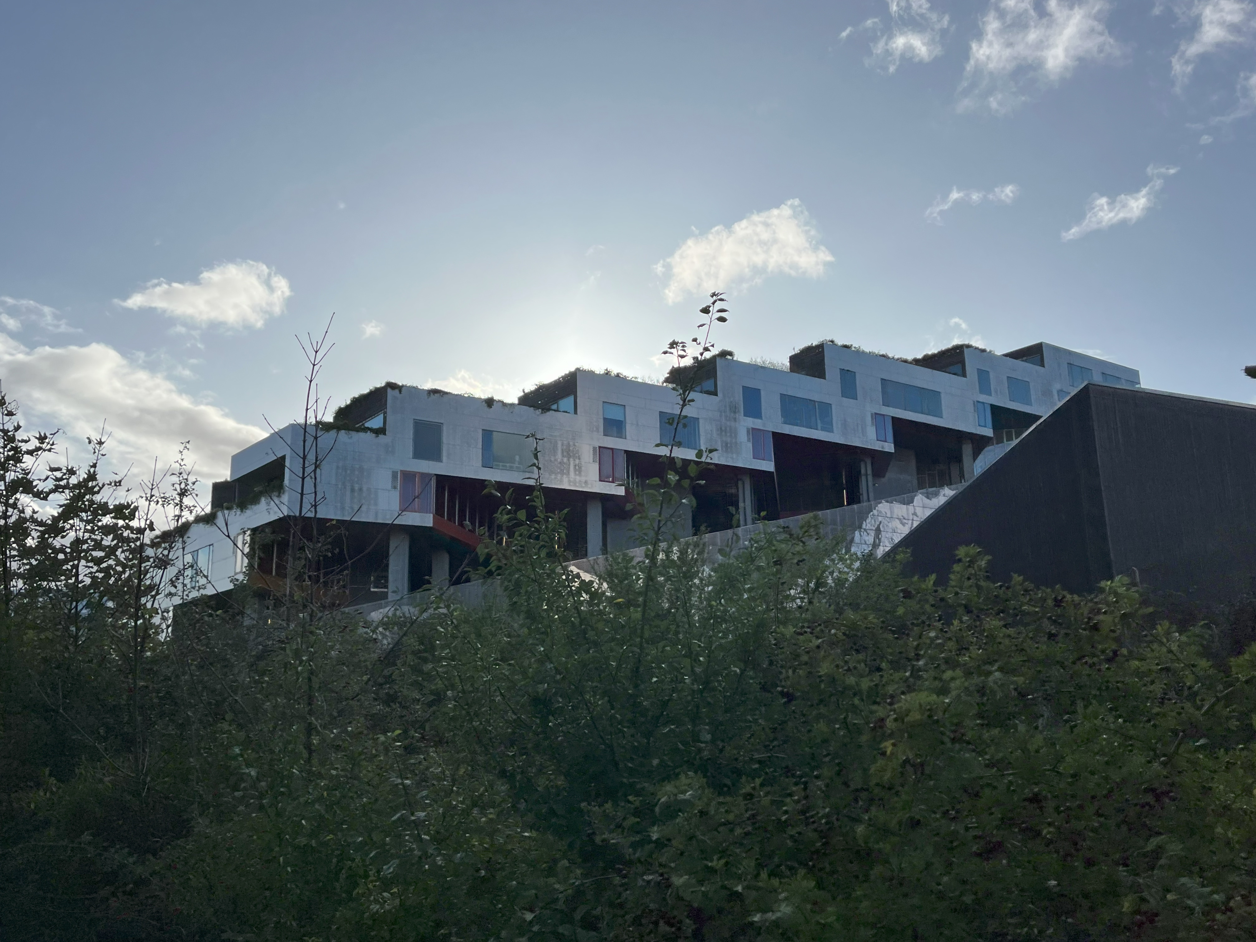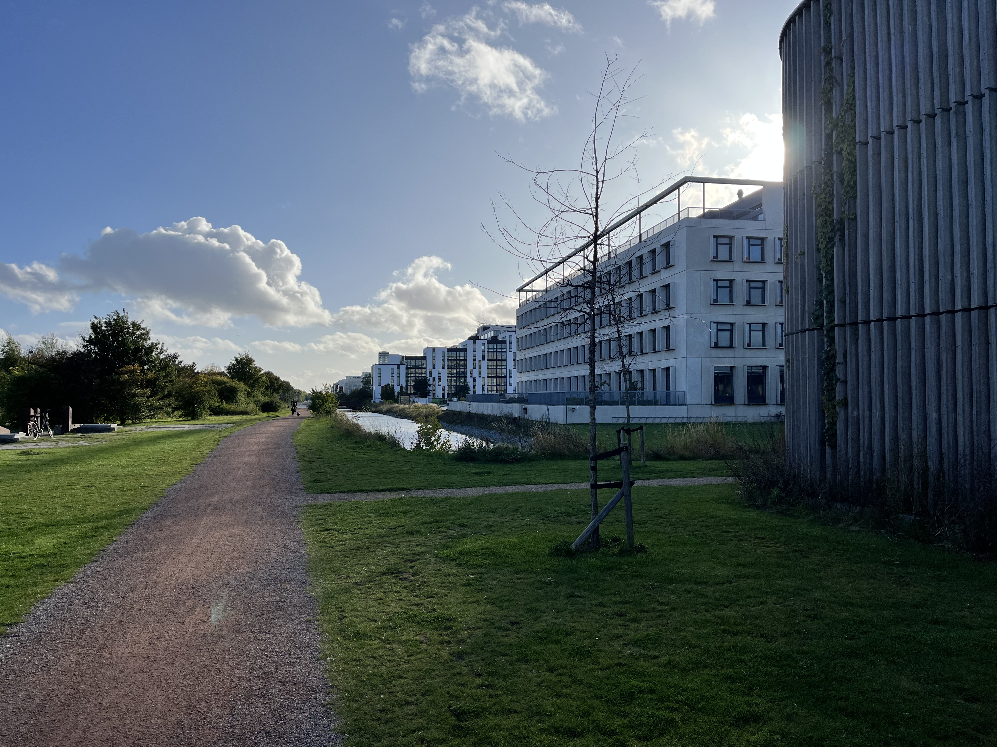 Der var en sidste detour, og den sendte os over på østsiden af Ørestad, hvor jeg aldrig havde været. Her gik man langs en stor kanal, og havde udsigt til bagsiden af alle Ørestad Boulevards store firkanter, imens Ferringbygningen (eller hvad den nu har skiftet navn til) åbenbarede sig i det fjerne, og indikerede hvor målet var. Herfra var det lidt som gaden i den klassiske roman "Momo" af Michael Ende, hvor uanset hvor hurtigt man gik, så kom mållinjen aldrig nærmere. Men det gjorde den så alligevel, og pludseligt var det overstået.