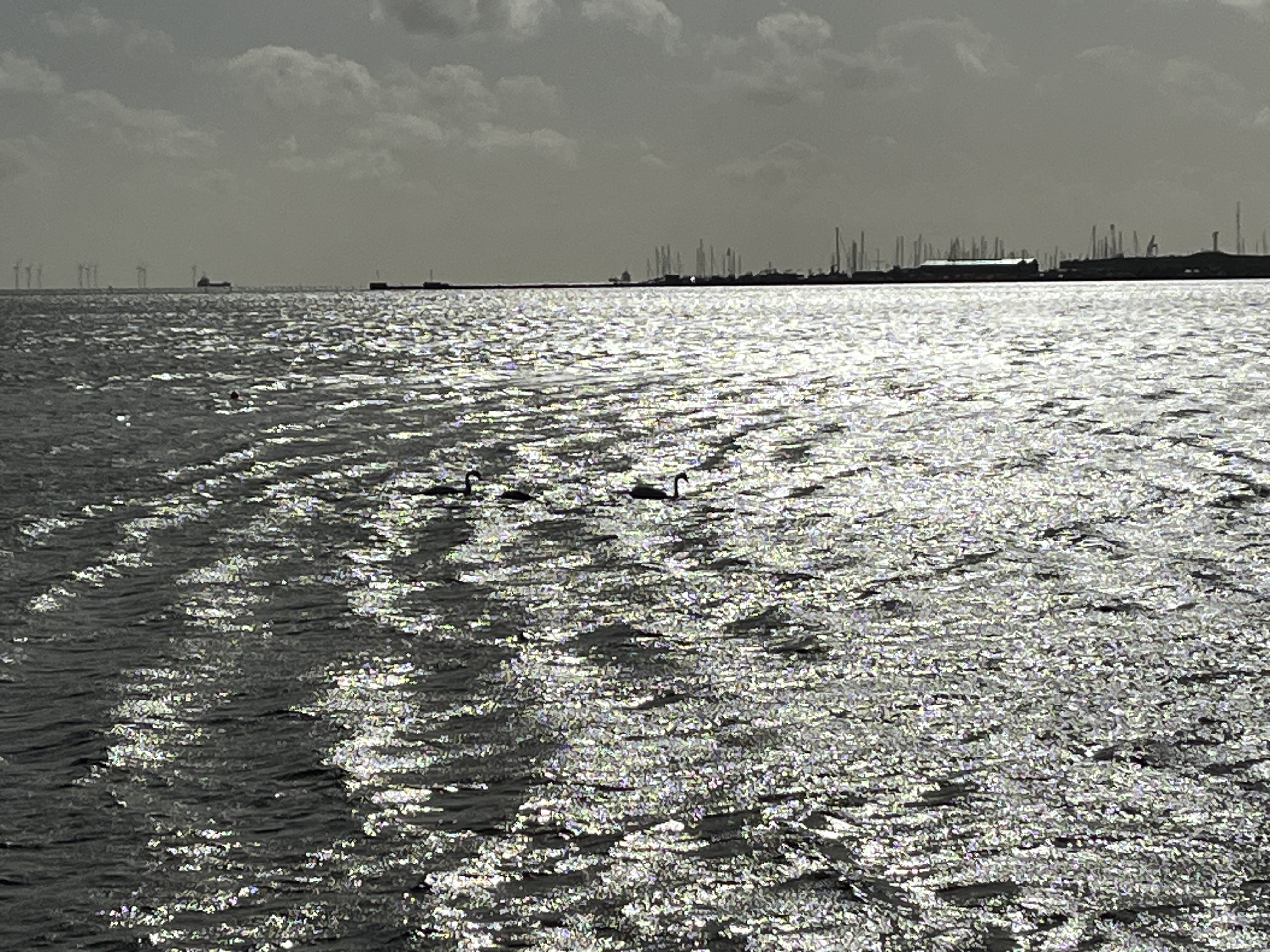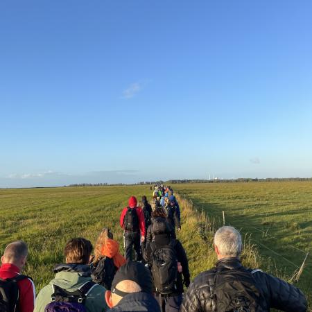 Selv om Dragør var i syne, havde vi alligevel et stykke vej derop, men heldigvis var vinden i ryggen, så det gav et godt puf på vejen. Der opstår en slags flok-effekt på sådan en tur, hvor man blot følger dem foran en, og det kunne man observere lige før Dragør, hvor jeg ved et tilfælde fik kigget på mit ur, og kunne se, at ruten slog et skarpt sving. Dog var alle vandrerne foran mig blot fortsat ligeud, og mon ikke det var fordi de blot fulgte hinanden. Nuancen var dog blot et par stier med omkring 50 meter imellem sig, så der var ingen som farede vild eller kom på unødige lange omveje.
