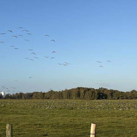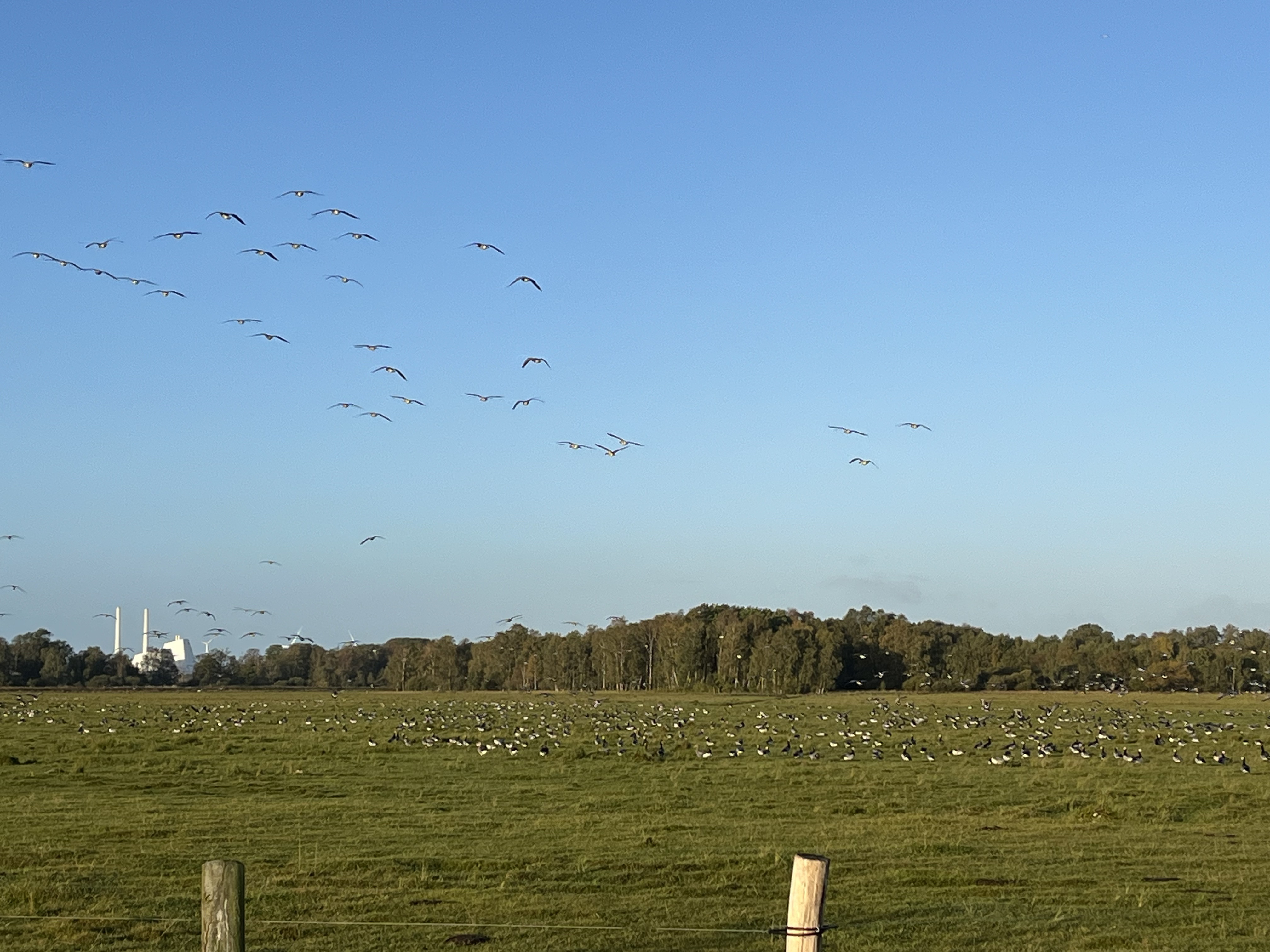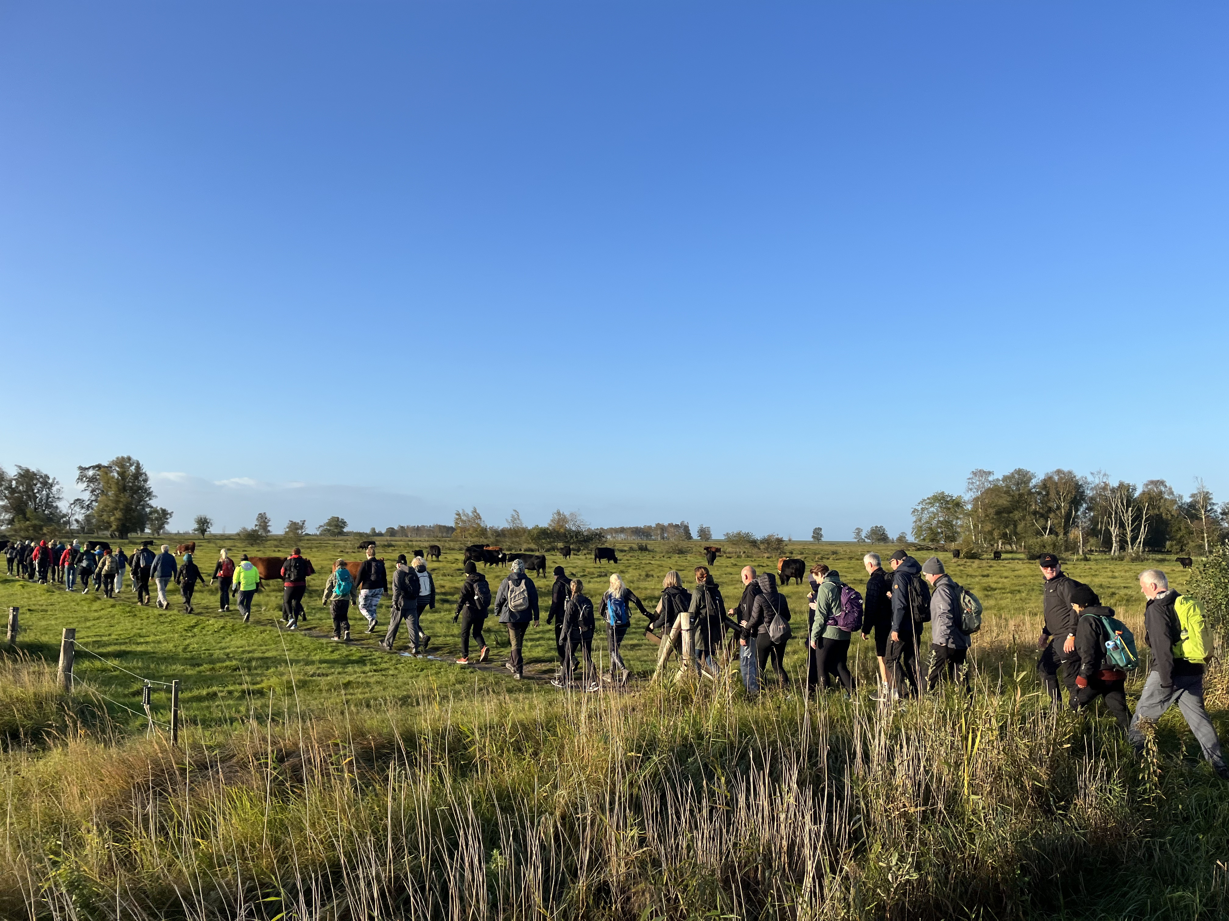 Vi mødte både gæs og køer på fælleden, og de første fem kilometer gik som en leg - dog stadig i tæt gåsegang så som ene-gænger kunne man underholde sig med at lytte lidt ind på andre folks samtaler.