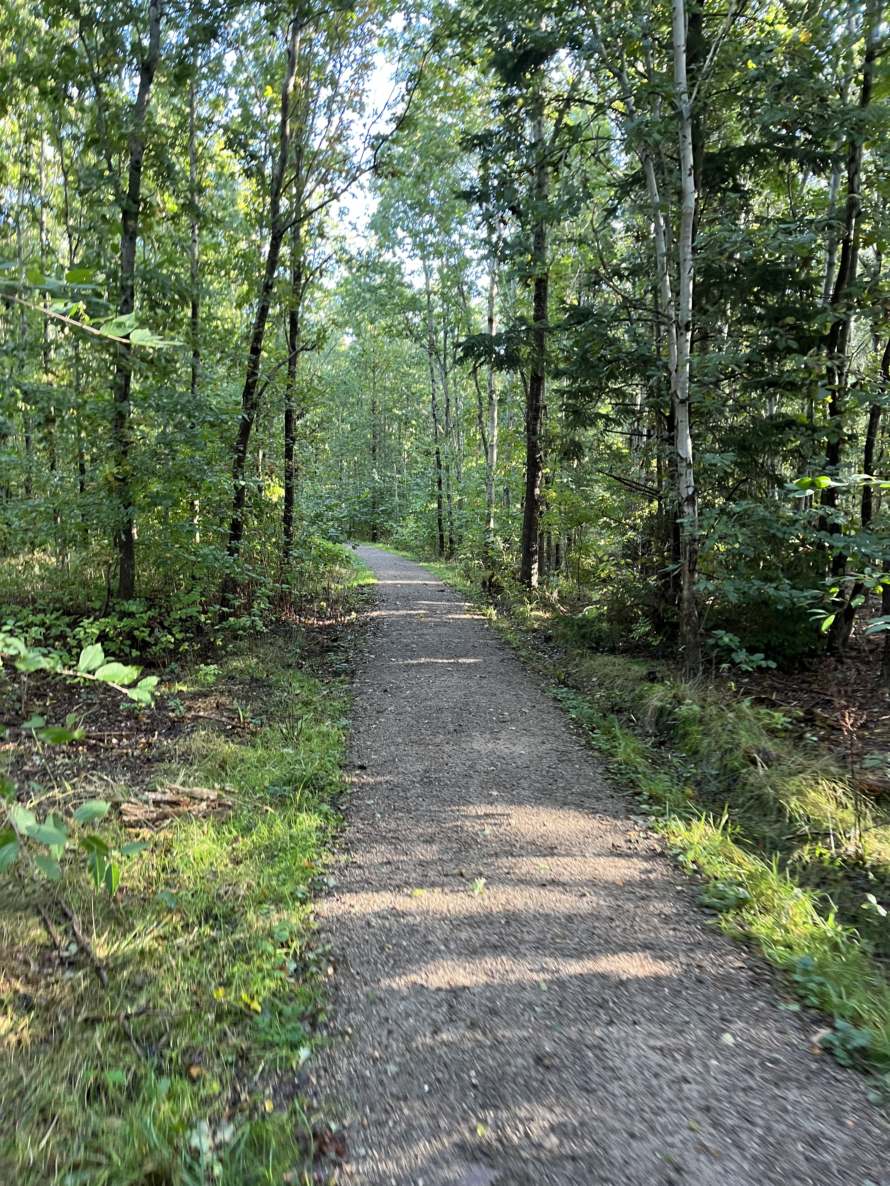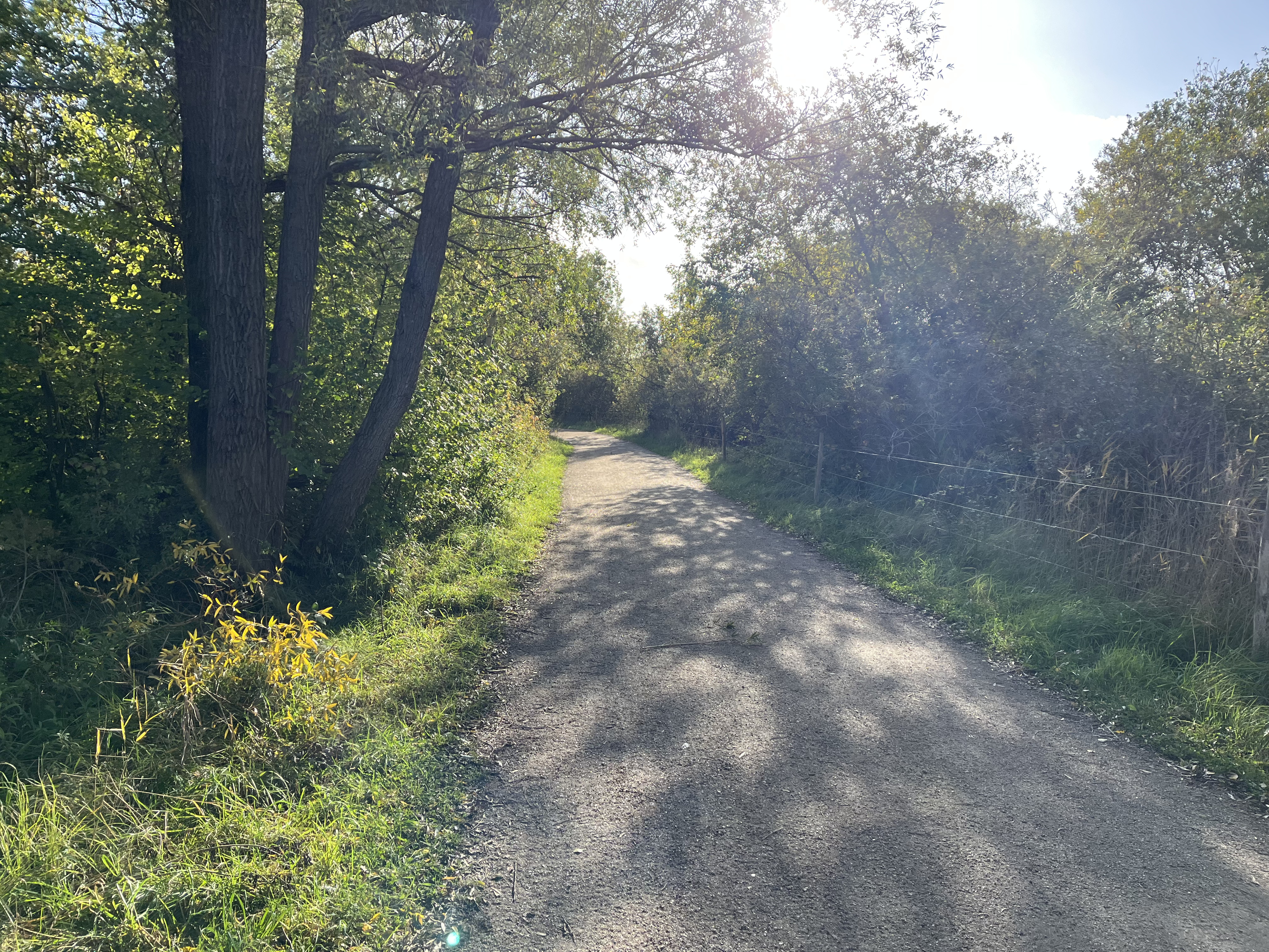 Efter at have passeret hvad der må have været Amagers eneste bakke på omtrent fire meter i højden, begyndte der langsomt at komme bevoksning omkring os, og kort tid efter var vi omringet af ung skov, som tog os hele vejen ned til sydsiden af den store dæmning ud imod Køge Bugt, og hvor jeg også kunne fejre at runde de første 10 km, der var kommet lige så let som de 5 første.