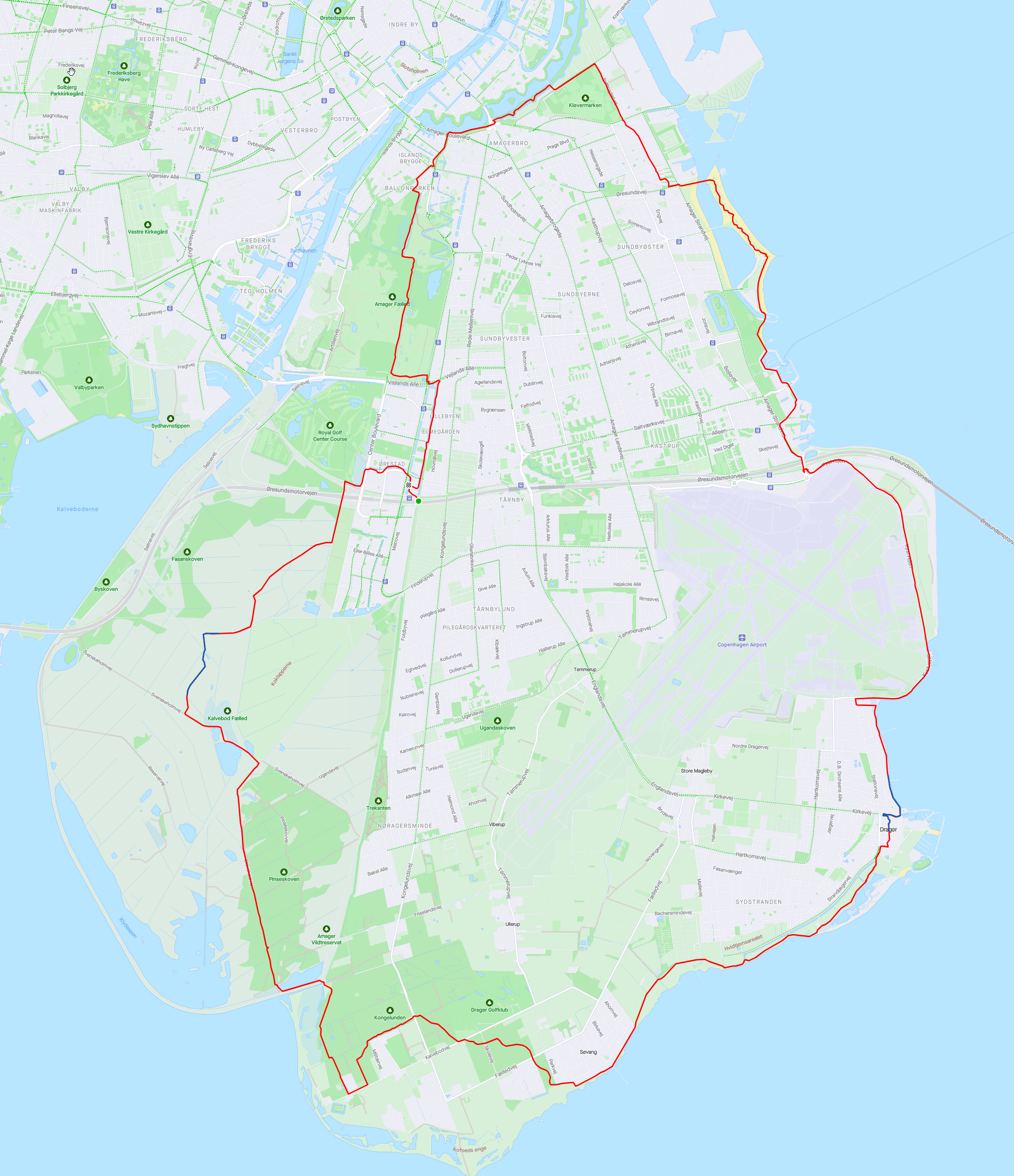 Fra hotellet drejede vi direkte over til nordsiden af Amager Fælled, som kun ligger 2 kilometer fra Rådhuspladsen og det er lidt fantastisk, at man kan komme så tæt på Københavns bymidte udelukkende igennem grønne omgivelser. Det var adskillige kilometer siden, jeg havde set andre deltagere, og her på fælleden virkede der et kort øjeblik helt mennesketomt. Jeg måtte lige sidde på en bænk til, men benene var lige ømme om jeg gik, stod eller sad, og når det var på den måde, kunne jeg ligeså godt bare se at komme på benene igen og imod mållinjen.