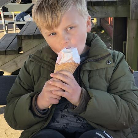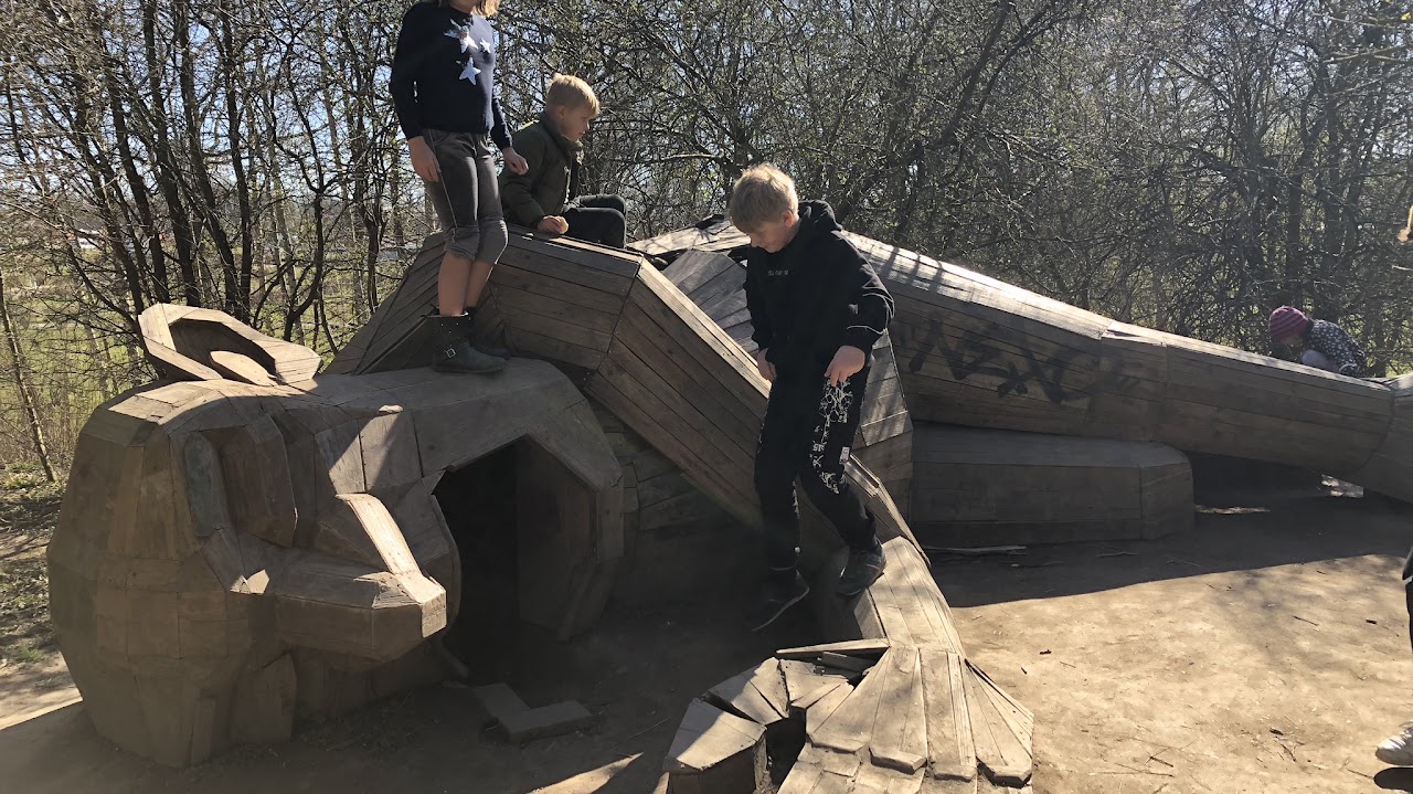 Belønningen for at finde alle kæmperne var årets første vaffelis, som blev indkøbt i lokalområdet, på Køge Marina i Det Blå Ishus ved restaurant Arken, og det var også velfortjent synes jeg. Vi kommer alle til at sove godt, og drømme om de store væsener der holder til i skovene, på bakkerne og ved vandet.