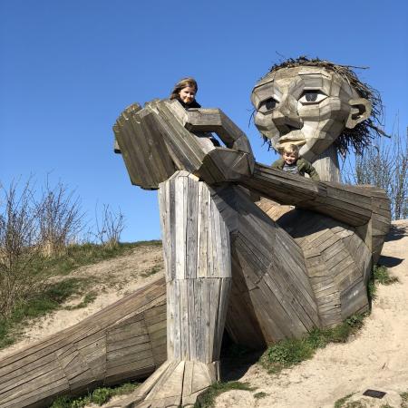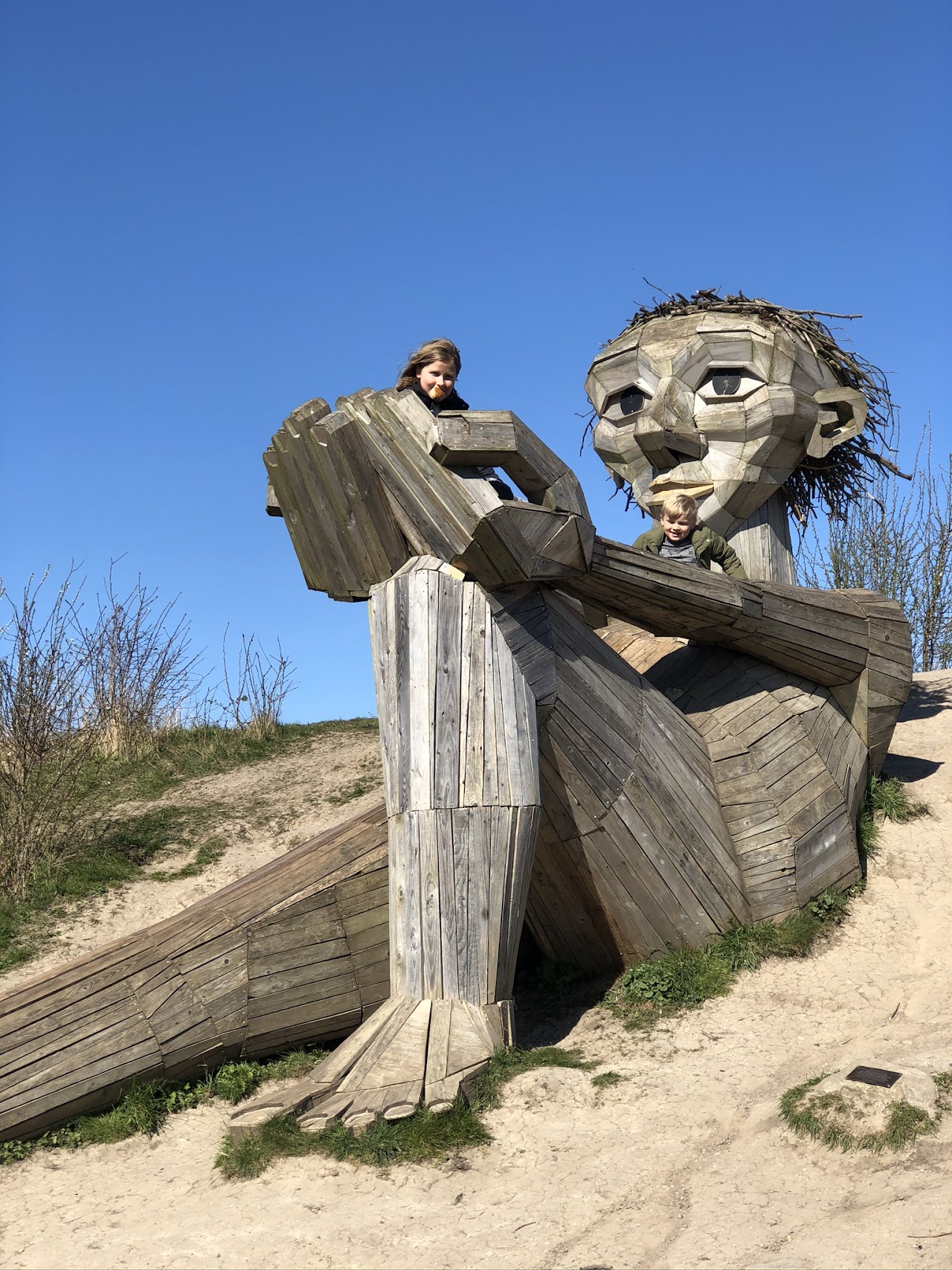 Strandparkerne omkring Arken var godt nok også et populært udflugtsmål i dag. Der var kitesurfere, folk med drager og legepladsen var fyldt med børn, som i tæthed alle kunne andrage bøder på 1.500,-. Oscar var en kilometers penge væk fra museet og var kæmpe nummer 3 på kortet, men den sidste på vores tur.