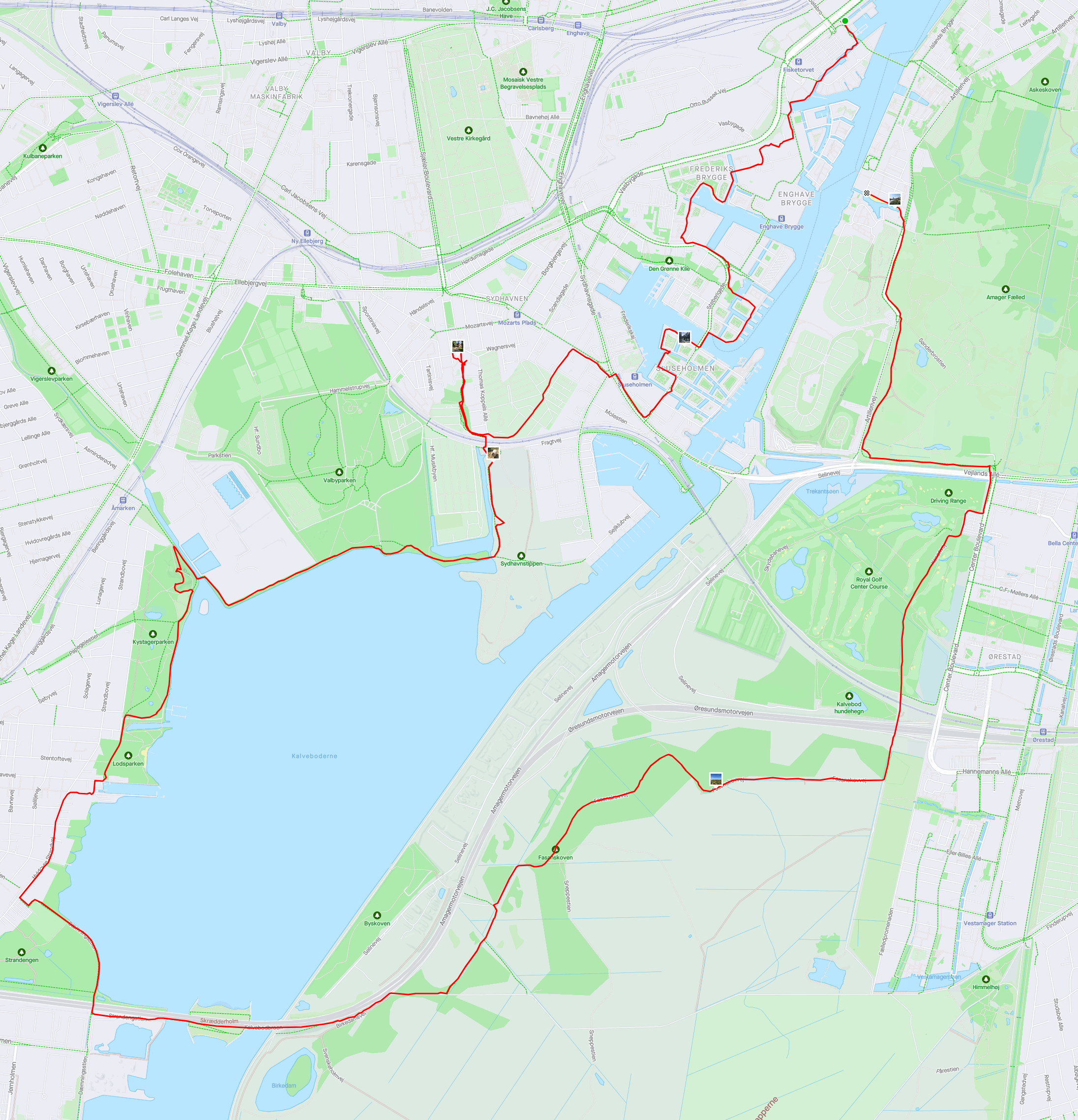 Så kom vi ud til selve Kalveboderne og kunne se hele resten af turen, både ned langs Hvidovre, over Amagermotorvejen og tilbage op ad Amager Fælled.