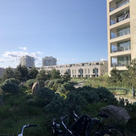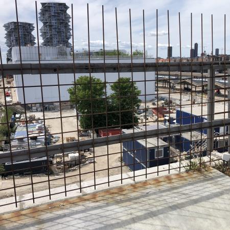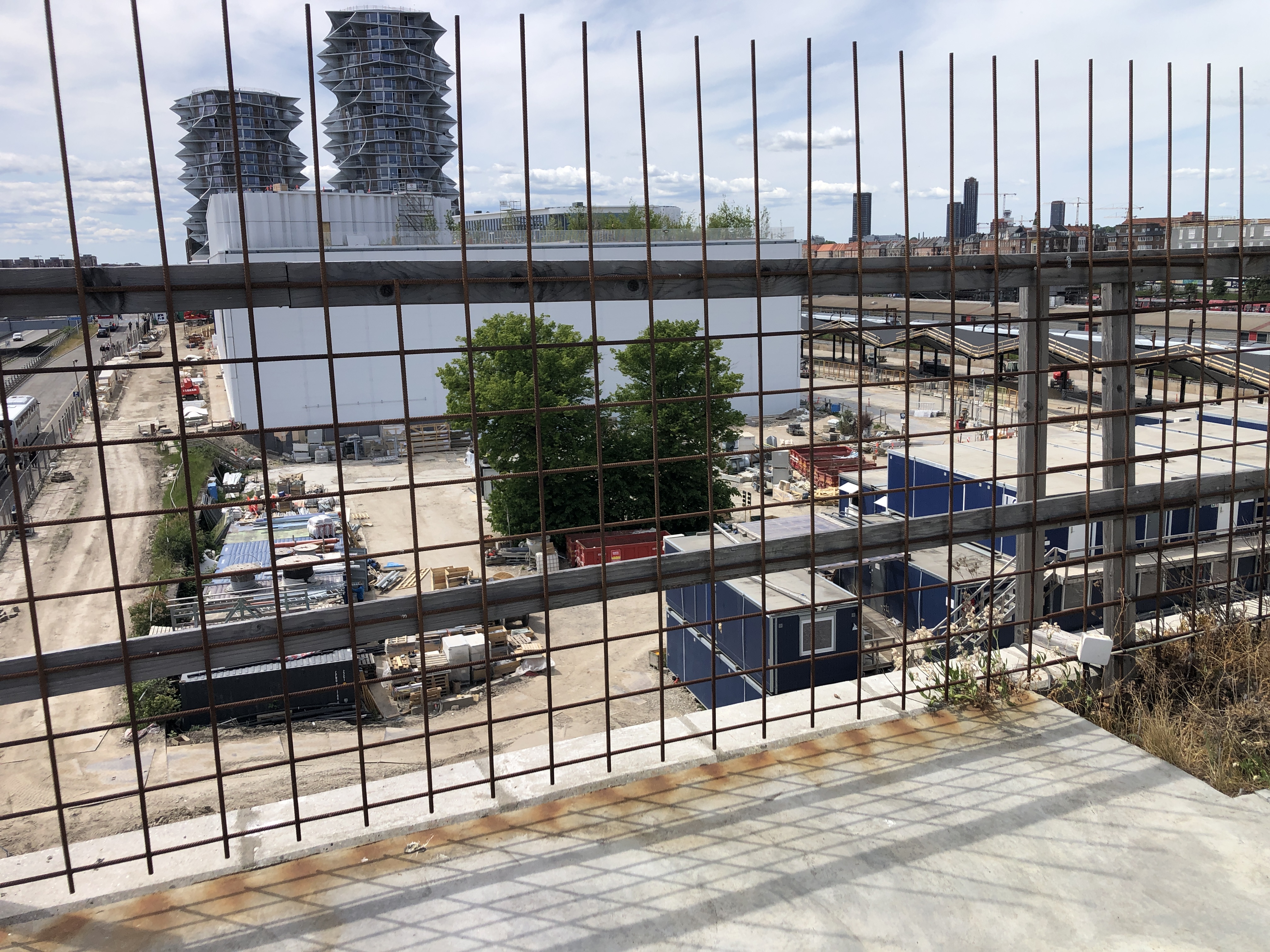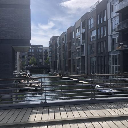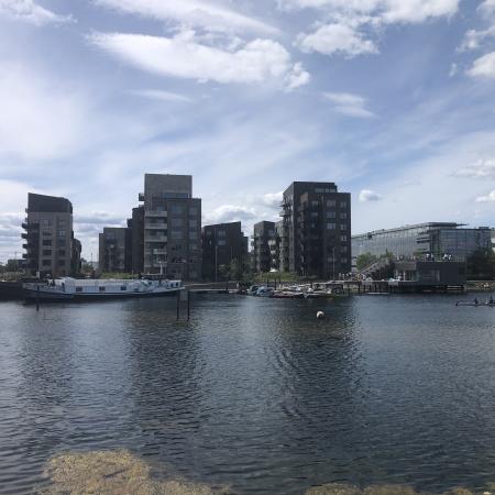 Vi kantede os over den nordlige del af fælleden, der var hegnet af pga. det stillestående byggeri, hvor der var en tvist om naturen. Herefter ramte vi byen oppe i den sydlige ende af Islands Brygge.