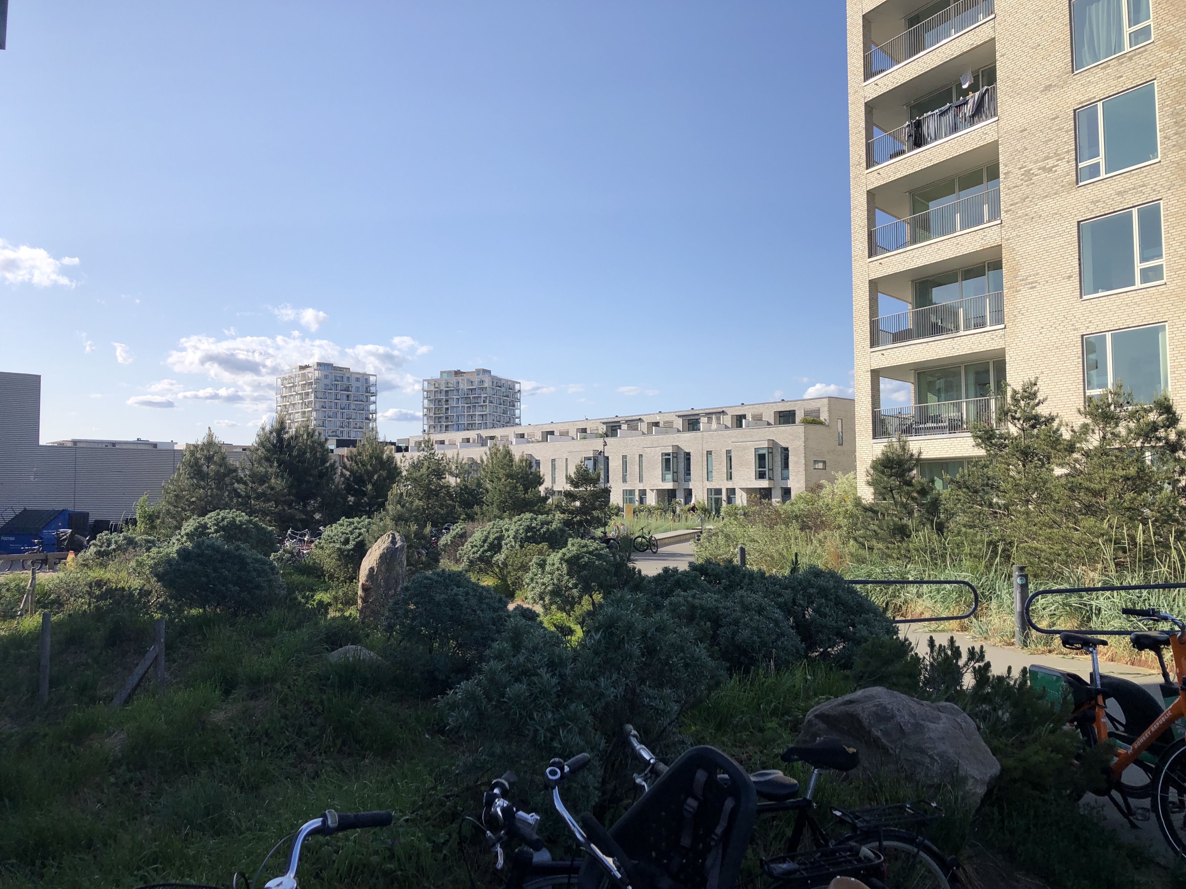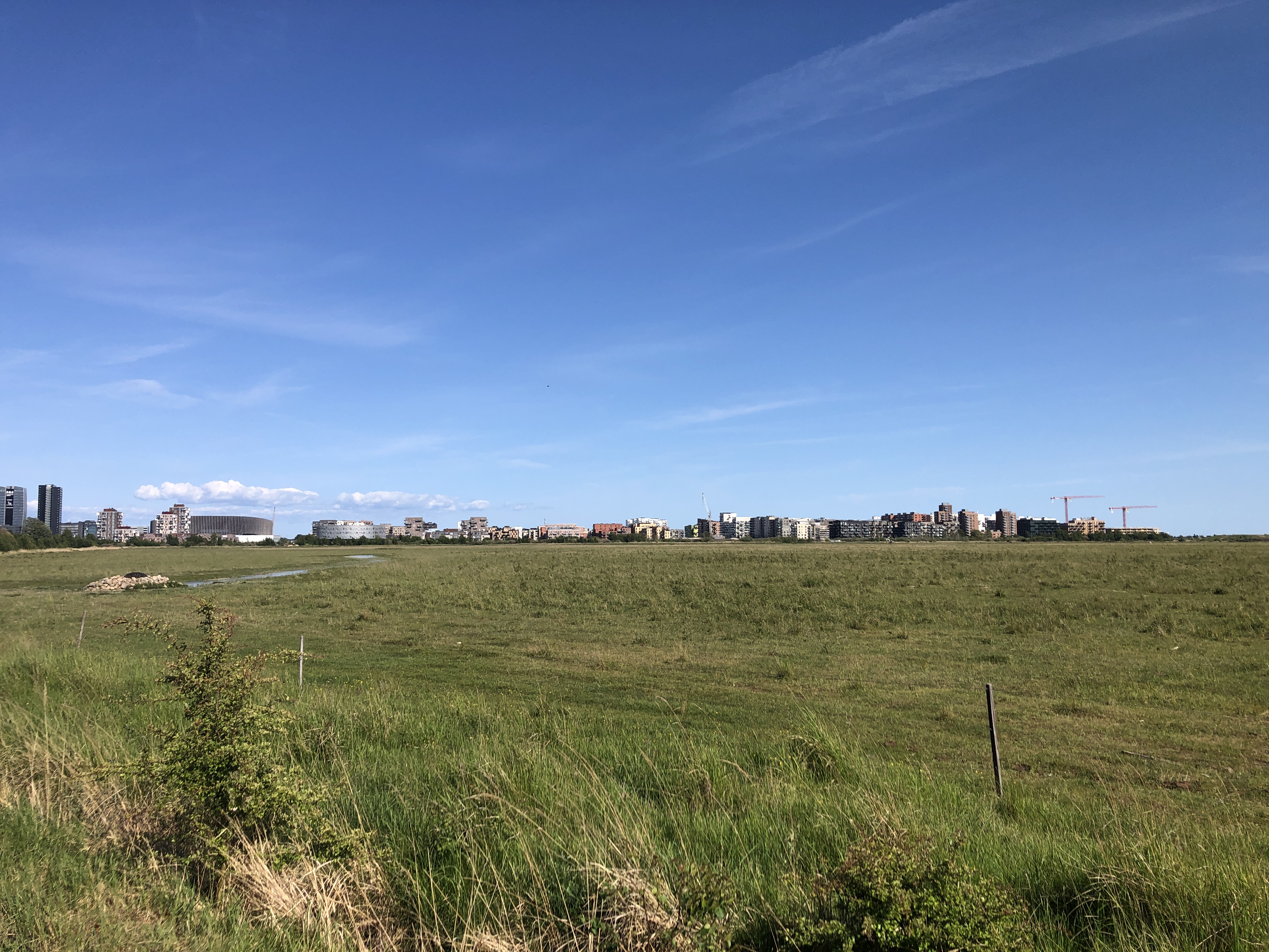 Det var pudsigt, at nærme sig Ørestaden vestfra. Man gik i skov og over mark, og pludselig ligger bylinjen der. Den er meget markeret og snorlige - nærmest som en mur.