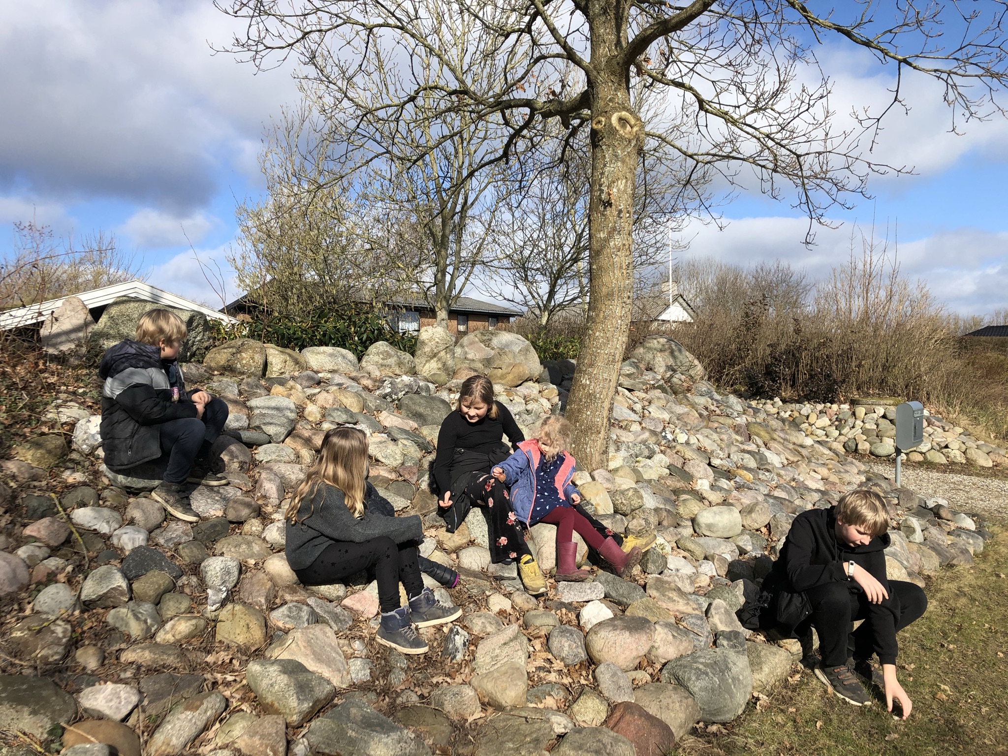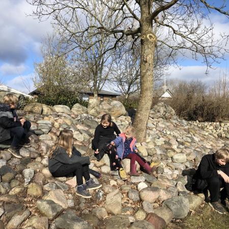 Turen løb op i 8,5 kilometer, så det var helt godkendt at skulle holde en pause undervejs. Her slog vi os ned på et stengærde i Loddenhøj.