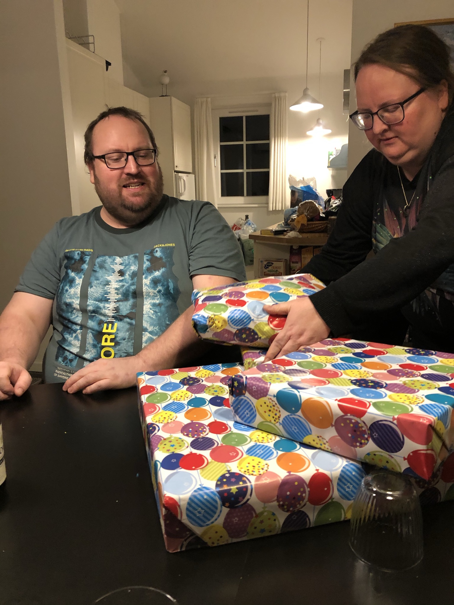 Nicolaj havde jo passeret sine 40 år i isolation om mandagen, men han skulle da ikke snydes for et par gaver i denne anledning. En masse gaver...