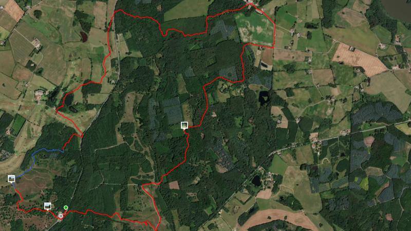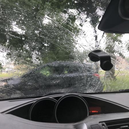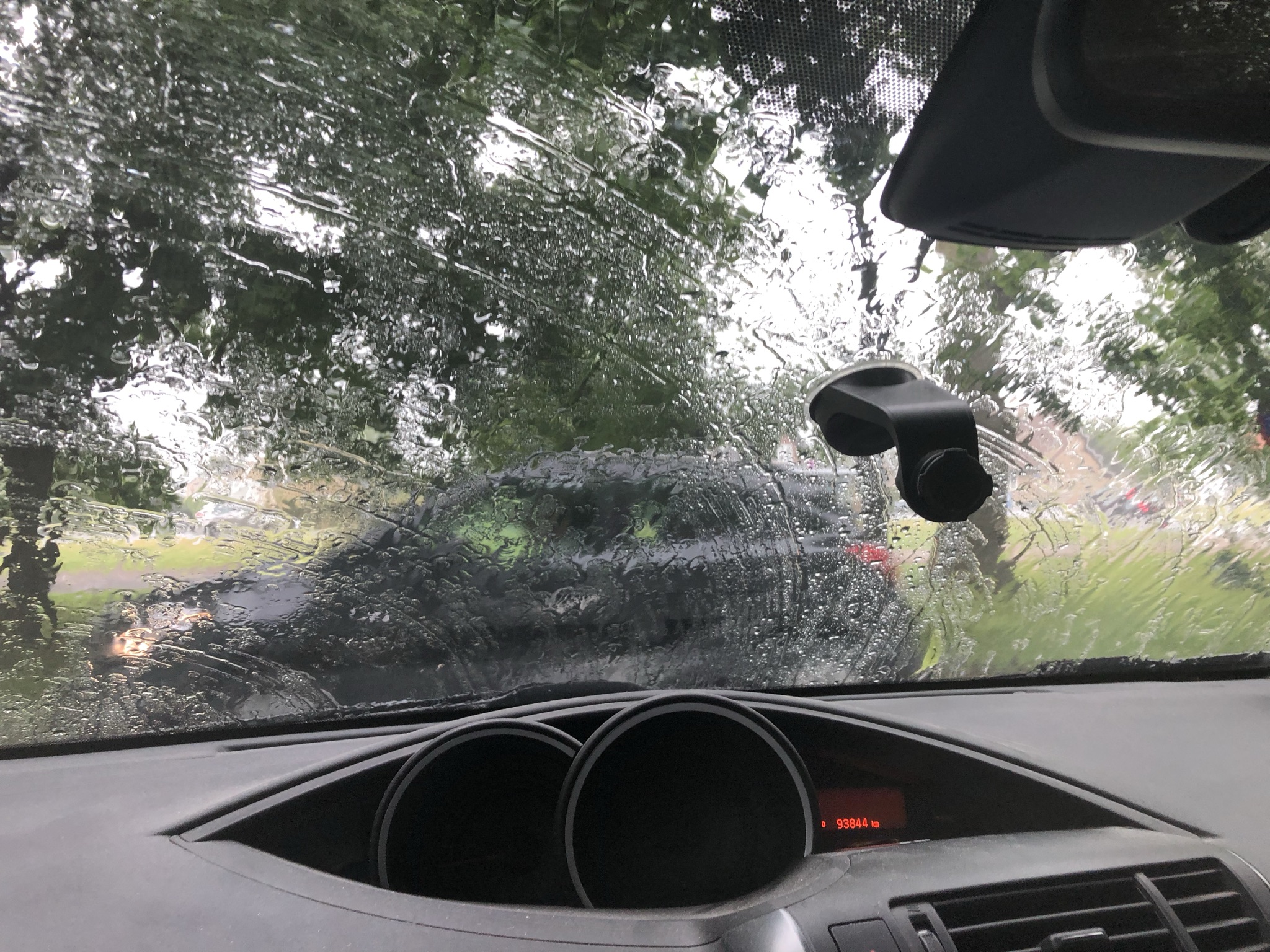 Vejrudsigten havde lovet skybrud, men det holdt tørt på hele vores gåtur - eller i hvert fald næsten. Lige over en kilometer før vi var tilbage ved bilen, åbnede himlens sluser sig og det stod ned. Jeg gemte hele selskabet under et træ, og spurtede tilbage for at hente bilen, men lige lidt hjalp det, for nedbøret var simpelthen for voldsomt til at blive tilbageholdt.