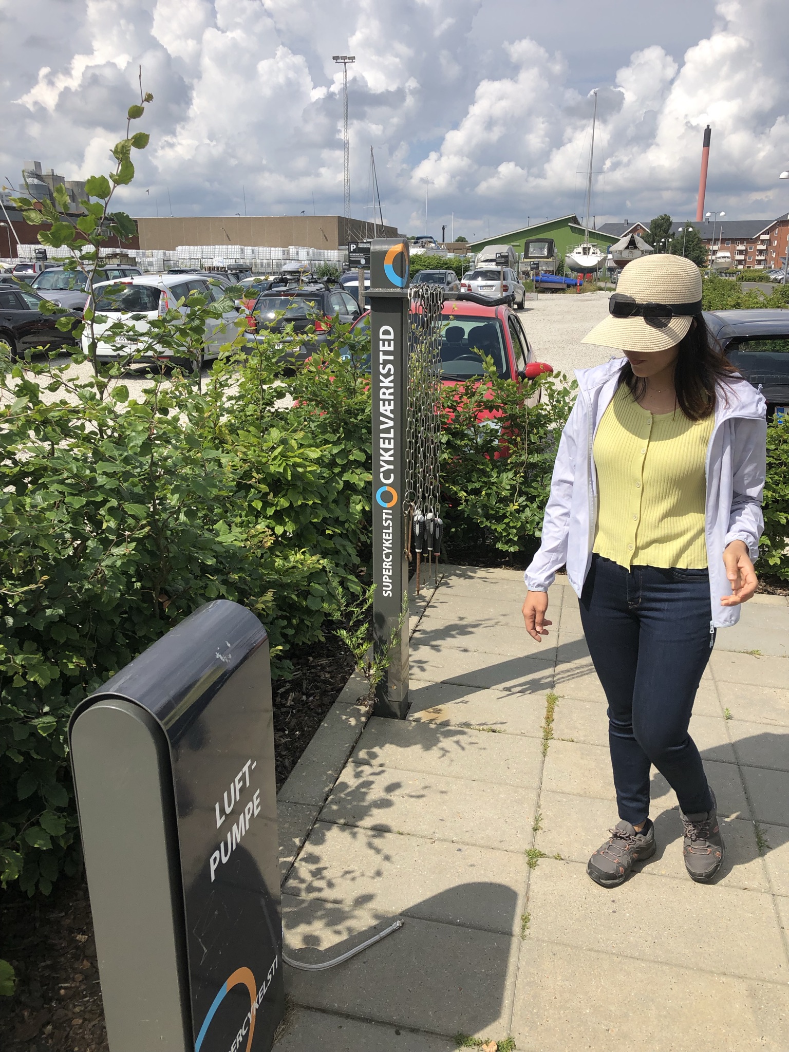 Der var også supercykelstier i Vejle, men de virkede alligevel et skridt foran os, for de kunne ikke bare stille med luftpumper, men også med et lille cykelværksted, hvor der hang værktøj klar til at reparere på sin cykel.
