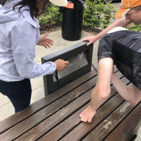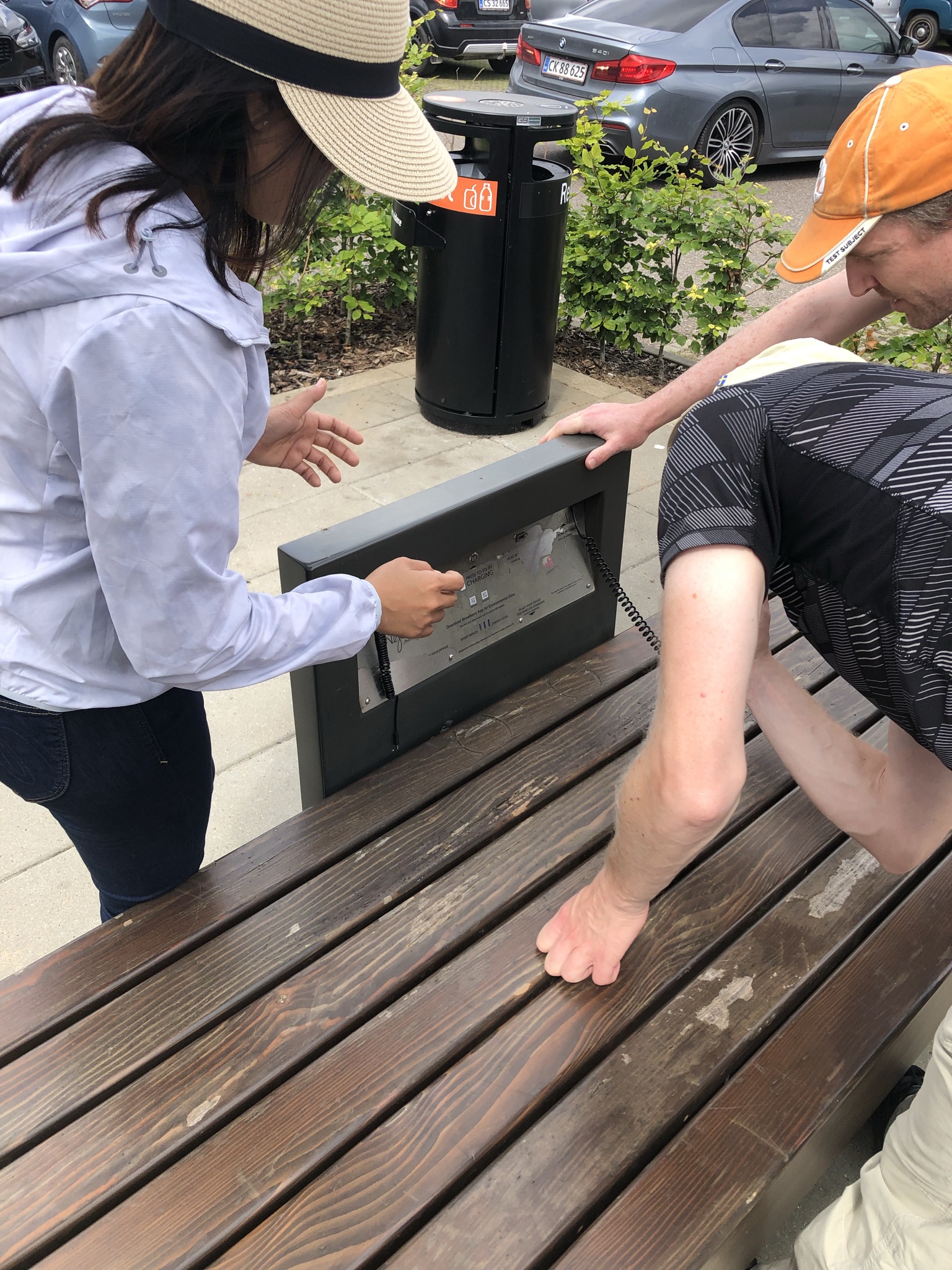 Der var også plads til den udmattede og endda med mulighed for, at oplade sin telefon og andre elektroniske enheder, drevet af en enkelt solcelle over bænken. Og det mest imponerende var, at det rent faktisk fungerede.