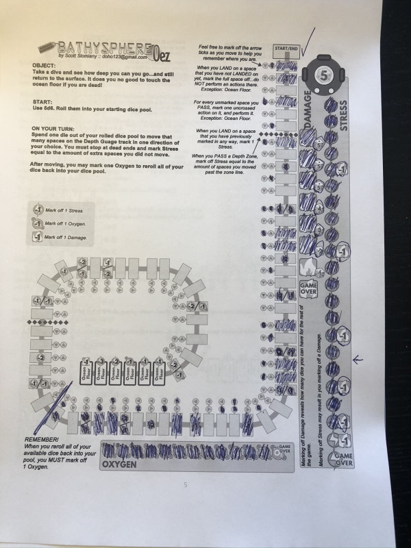 Dette er en mere kompliceret sag, og er en hel spilkampagne, der spænder ikke mindre end 64 sider. Konceptet er, at man har en dykkerklokke og skal forsøge at dykke så dybt som muligt, uden at ødelægge fartøjet. Det er et forholdsvist komplekst spil, hvor man styrer tre parametre: Ilt, stress (på fartøjet) og skade. Man slår fem terninger og benytter herefter hver terning til, at dykke det antal felter som terningen viser. Visse felter giver points og andre felter giver skade, stress eller bruger ilt, hvis man ikke sørger for at lande på dem og dermed deaktivere dem. Når man har brugt alle fem terninger, så bruger man ilt på at få lov at slå terningerne igen, men jo mere skade dykkerklokken tager, jo færre terninger har man, at gøre godt med, og det gør, at man skal være meget nøjeregnende når man er nede i dybden, for at sikre at man også kan klare opturen, uden at det går galt.