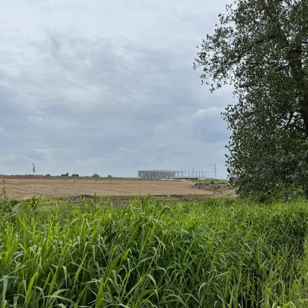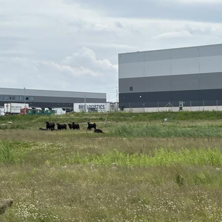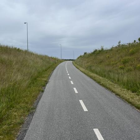 Det åbne landskab blev brudt af de enorme bygninger i det nye transportcenter, hvis mure nærmest strakte sig imod horisonten, hvor den næste bygning så tog over, men omvendt var kvaliteten af stien markant bedre her, selv om det nok kom ned til, at den lokale landmand får et par tusinde kroner, for at køre en traktor langs åen et par gange om året.
