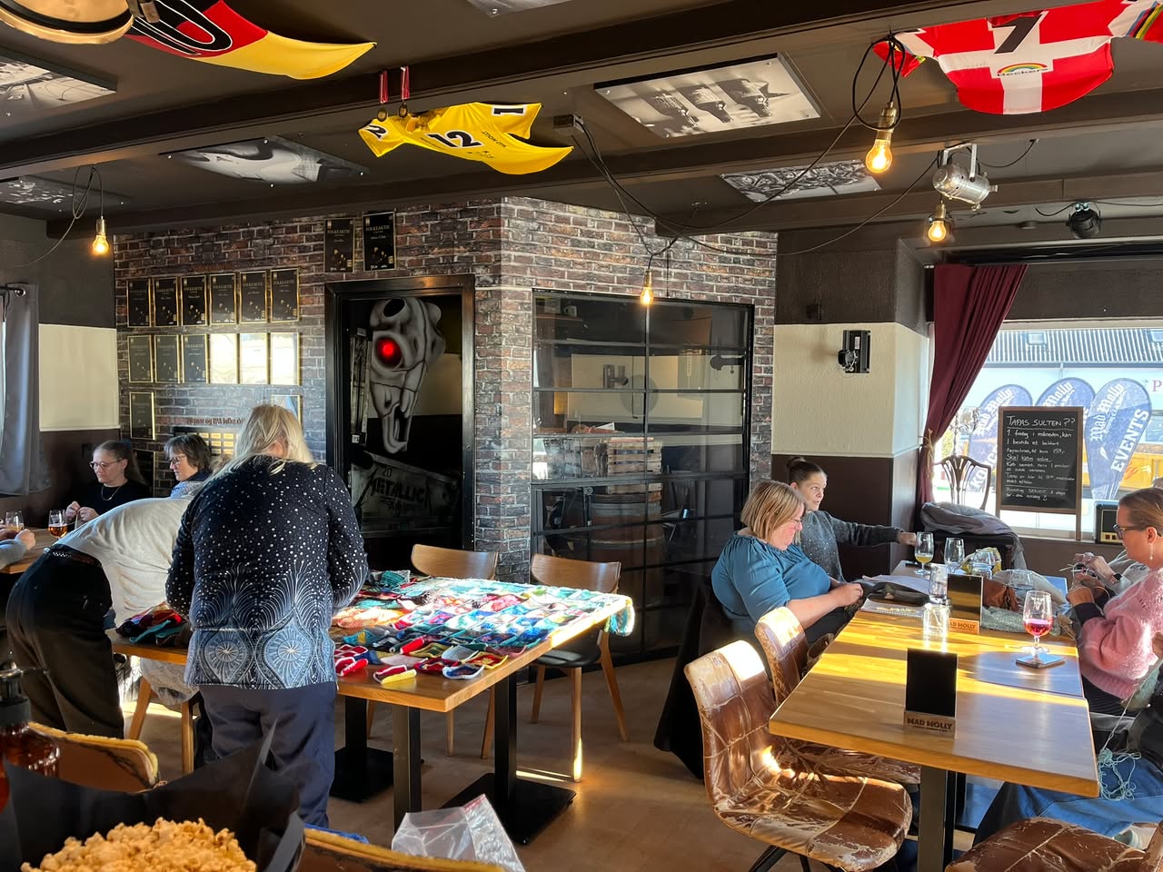 I dag havde jeg glæden af, at servicere Køge Nords førende husmødre til "Strik og Øl" på Mad Molly. Der blev både strikket, hæklet og det som var værre, og den store Mad Molly quilt blev bredt ud på bordet, og den er efterhånden et imponerende skue.{"title":"Edit diaryentry"}