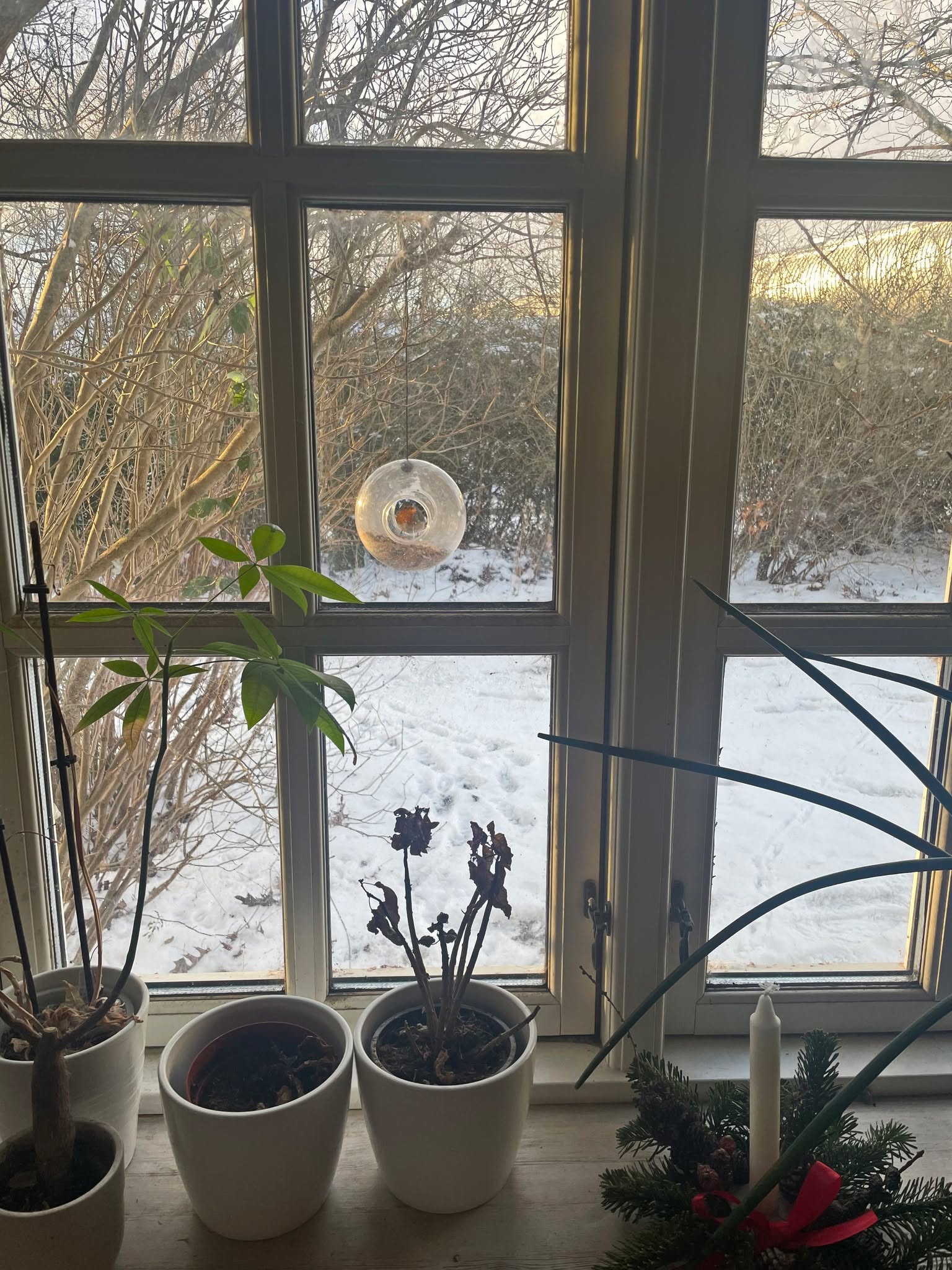 VintervejrSneen ligger tungt, så var rundt med lidt korn i foderhusene, og det gav gevinst efter få minutter.